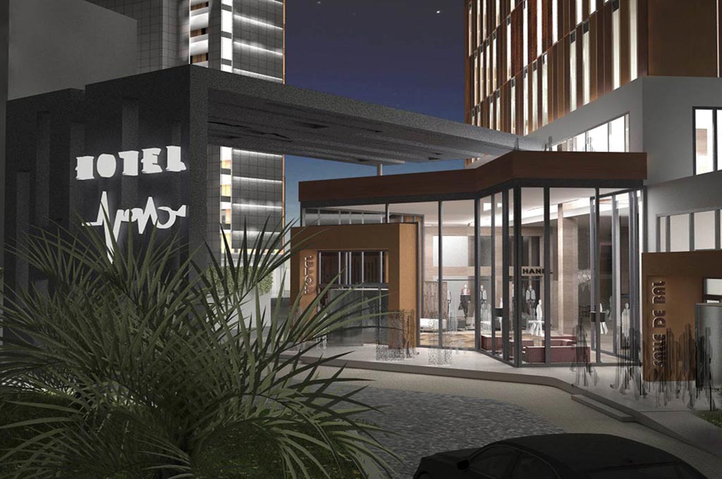 Marouf Group Hotel and Office Complex is located in the capital city of Algiers’s Bab Ezzouar district, within an area of 8844 m2. The total construction area is 40680,86 m2. The complex consists of an office building, an automobile showroom along with two hotels (one with 3* and the other with 4*). A ball room, meeting rooms and an independent restaurant support the complex.